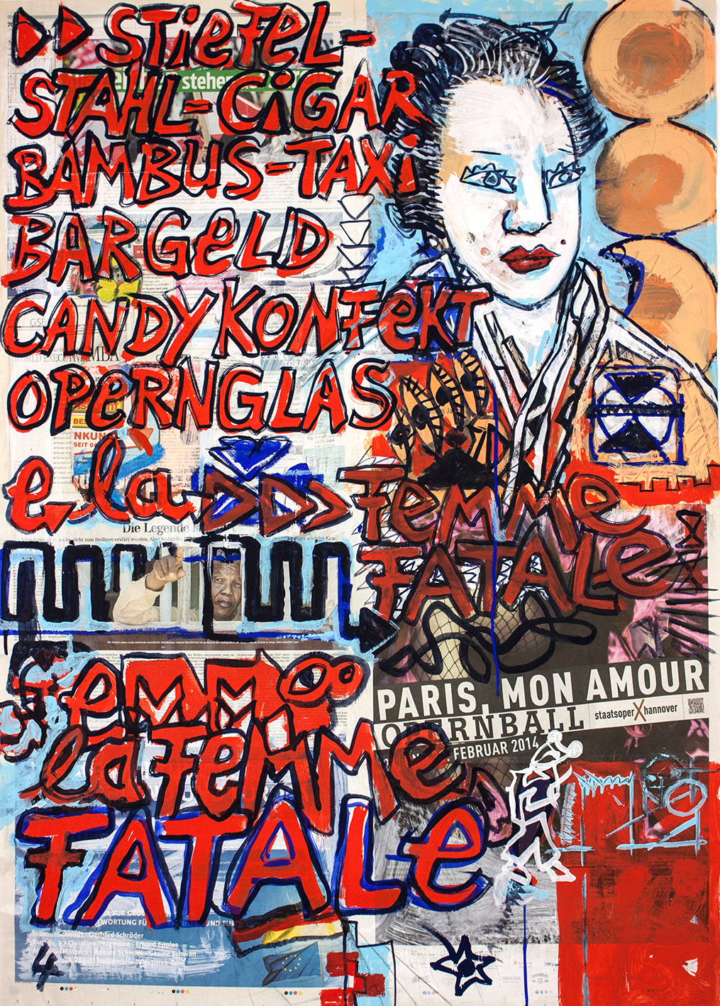 painting on newspaper, acrylic,