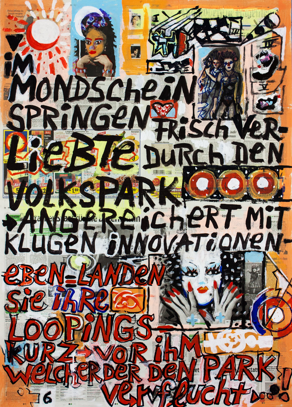 painting on newspaper, acrylic,