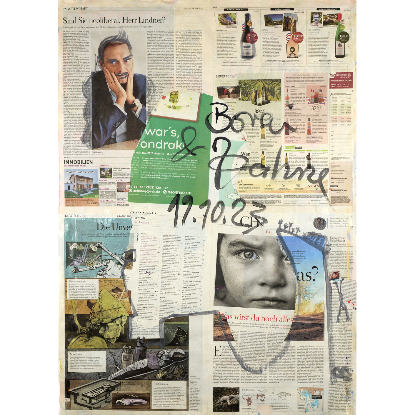 painting on newspaper, acrylic,