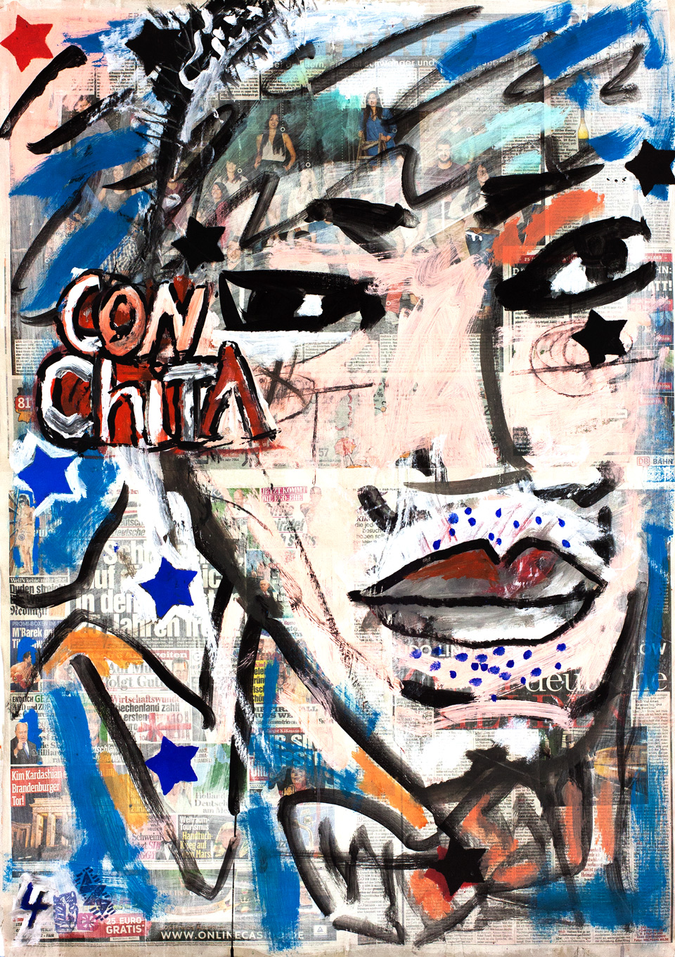 painting on newspaper, acrylic,