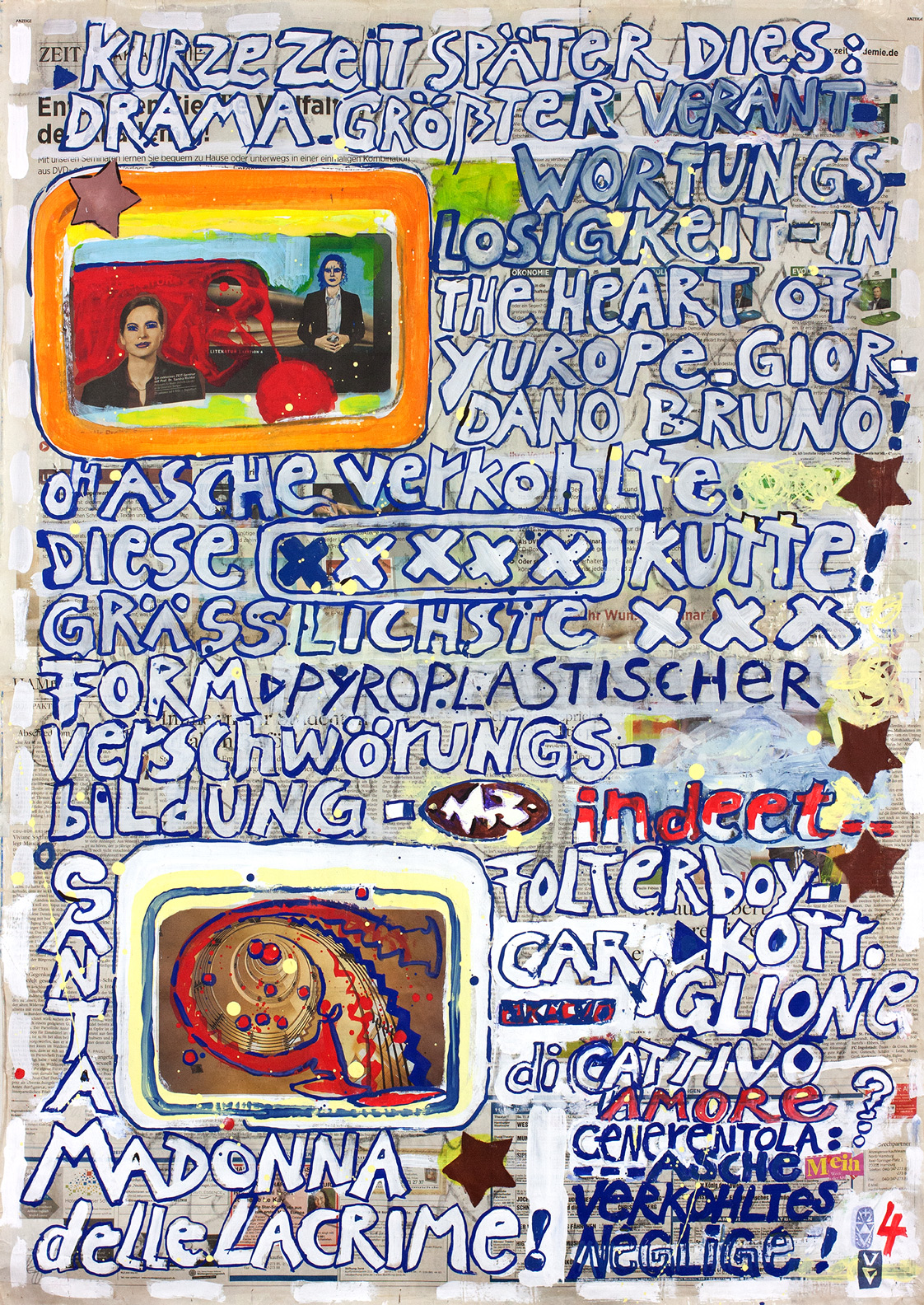 painting on newspaper, acrylic,