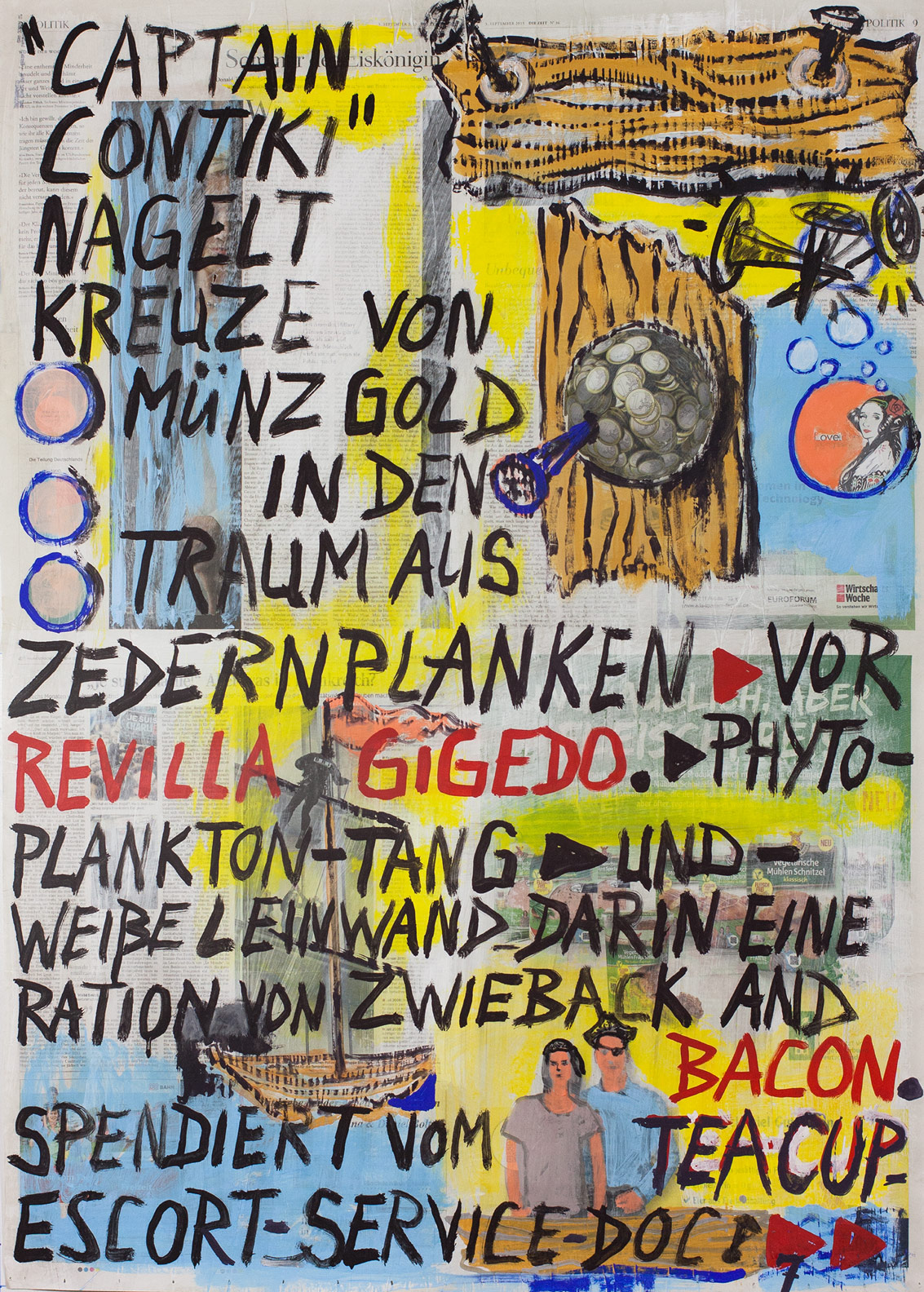 painting on newspaper, acrylic,