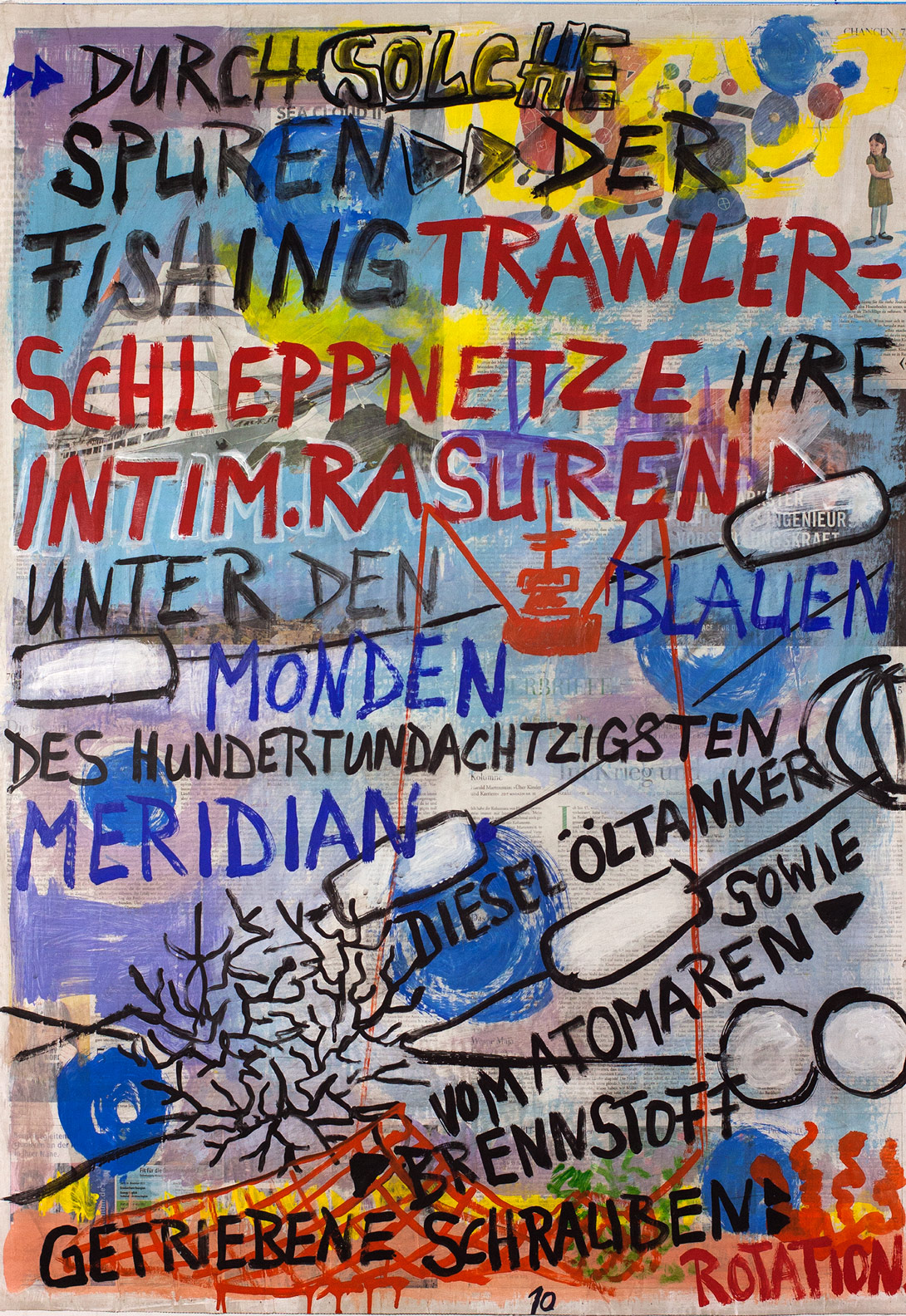 painting on newspaper, acrylic,