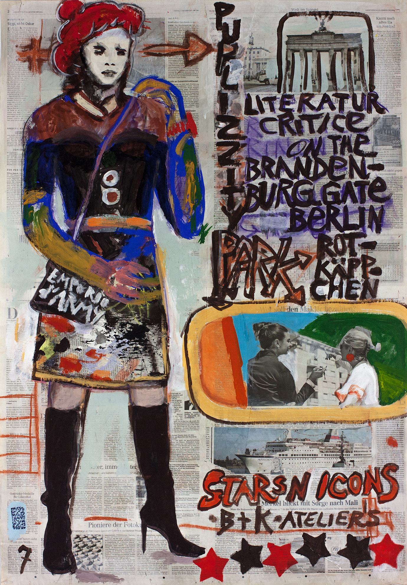 painting on newspaper, acrylic,