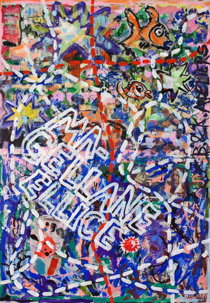 painting on newspaper, acrylic,