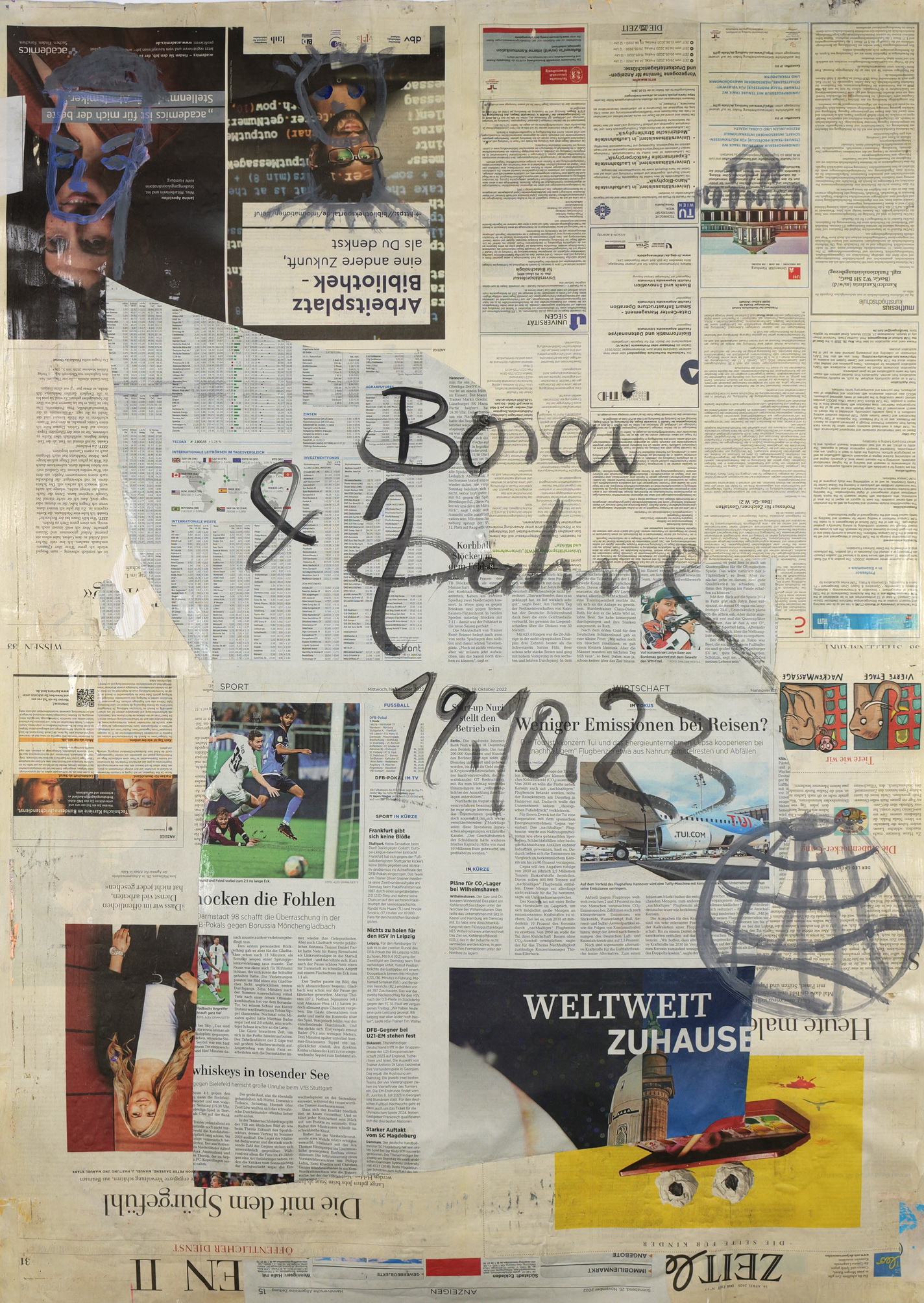 painting on newspaper, acrylic,