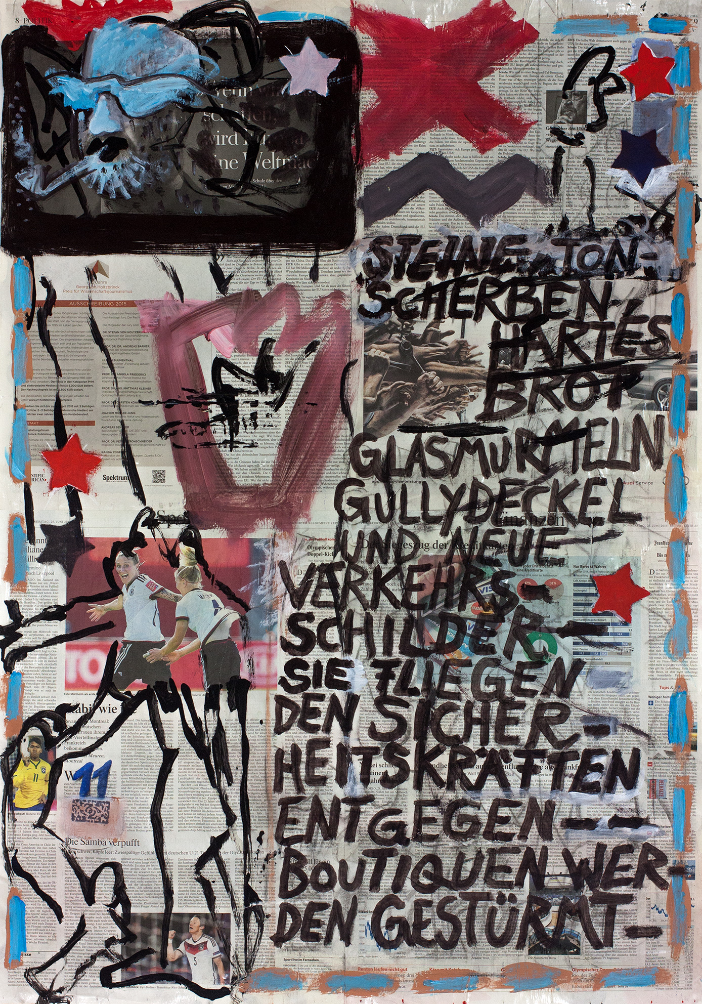 painting on newspaper, acrylic,