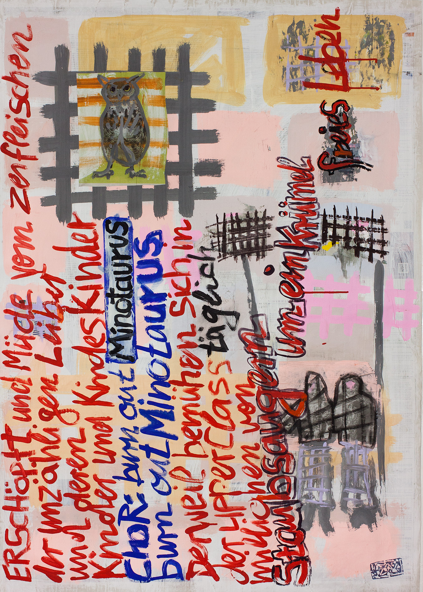 Hamlet Cyborg Infernal Machine painting on newspaper, acrylic, 70 sheets, 2 intro sheets ~112x79cm 2017 38-hamlet-cyborg-infernal-machine Bild 40 von 72