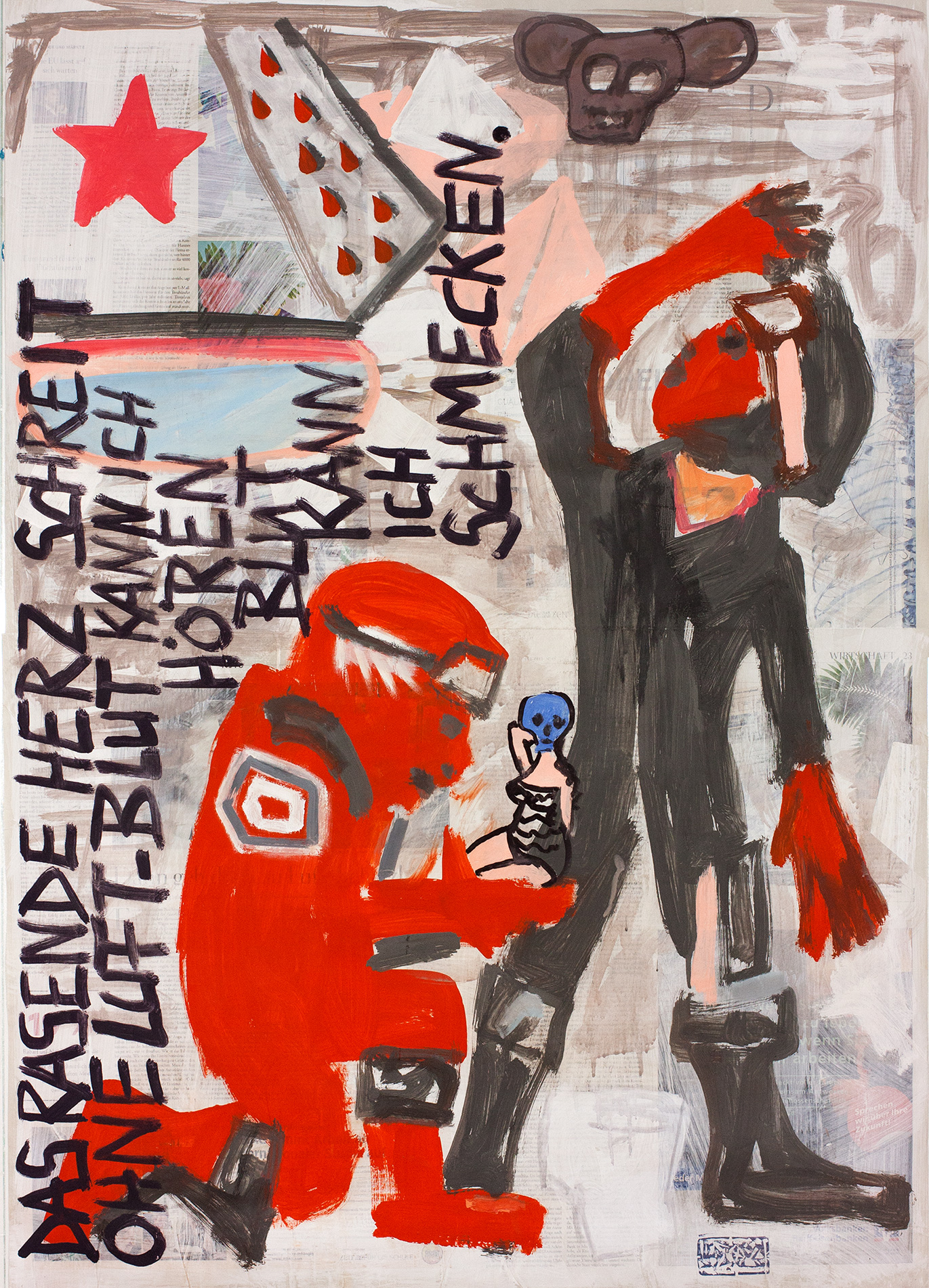 Hamlet Cyborg Infernal Machine painting on newspaper, acrylic, 70 sheets, 2 intro sheets ~112x79cm 2017 43-hamlet-cyborg-infernal-machine Bild 45 von 72