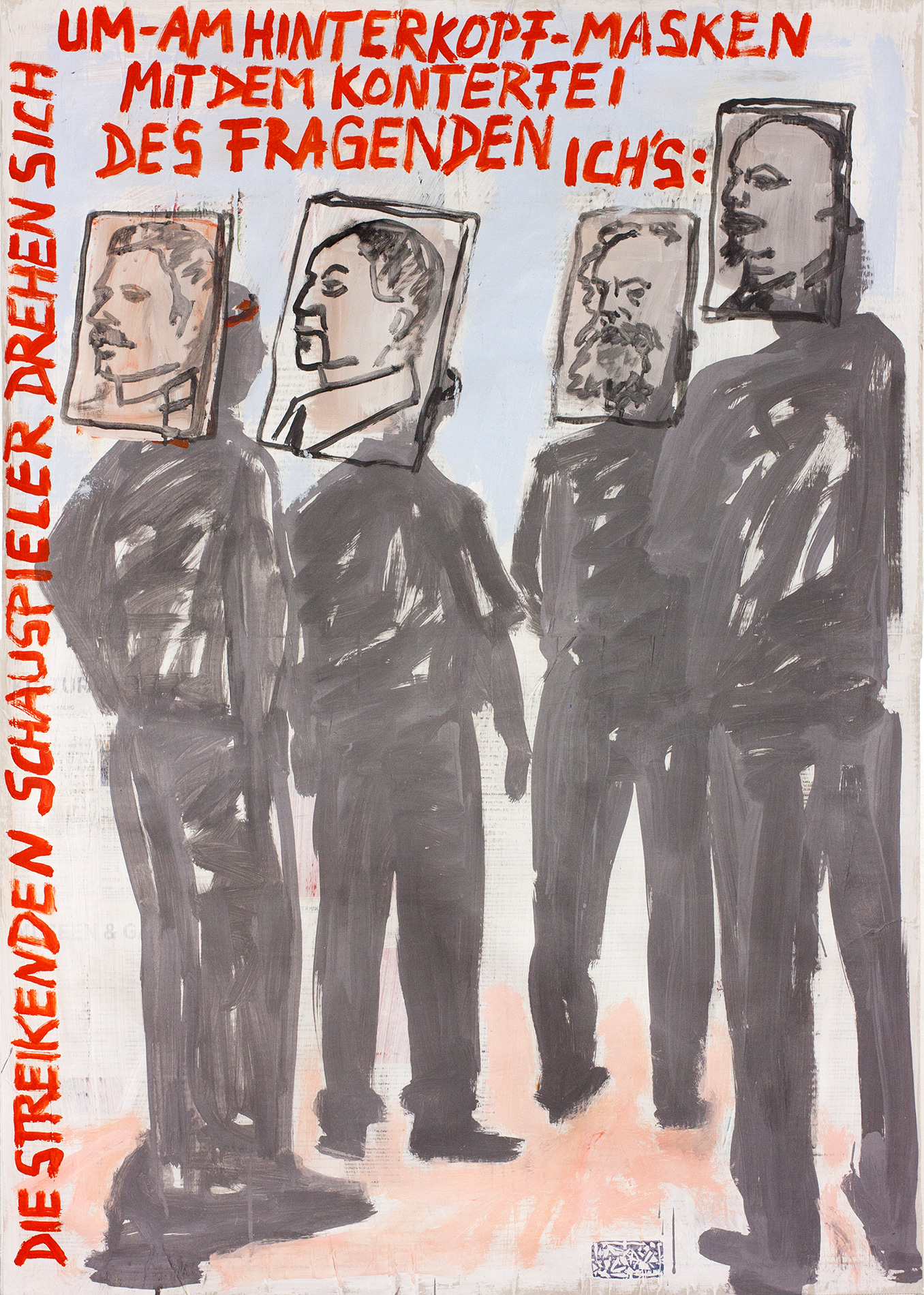 Hamlet Cyborg Infernal Machine painting on newspaper, acrylic, 70 sheets, 2 intro sheets ~112x79cm 2017 48-hamlet-cyborg-infernal-machine Bild 50 von 72
