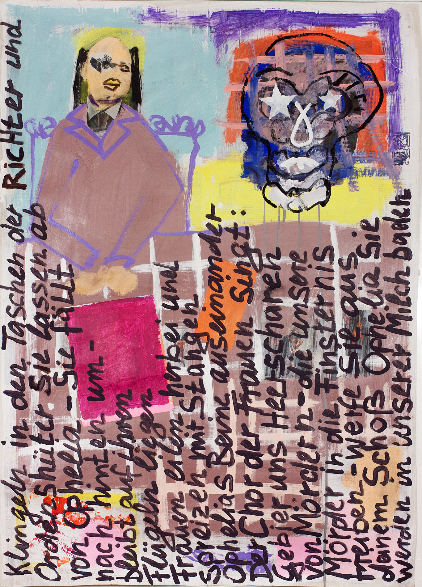 Hamlet Cyborg Infernal Machine painting on newspaper, acrylic, 70 sheets, 2 intro sheets ~112x79cm 2017 54-hamlet-cyborg-infernal-machine Bild 56 von 72