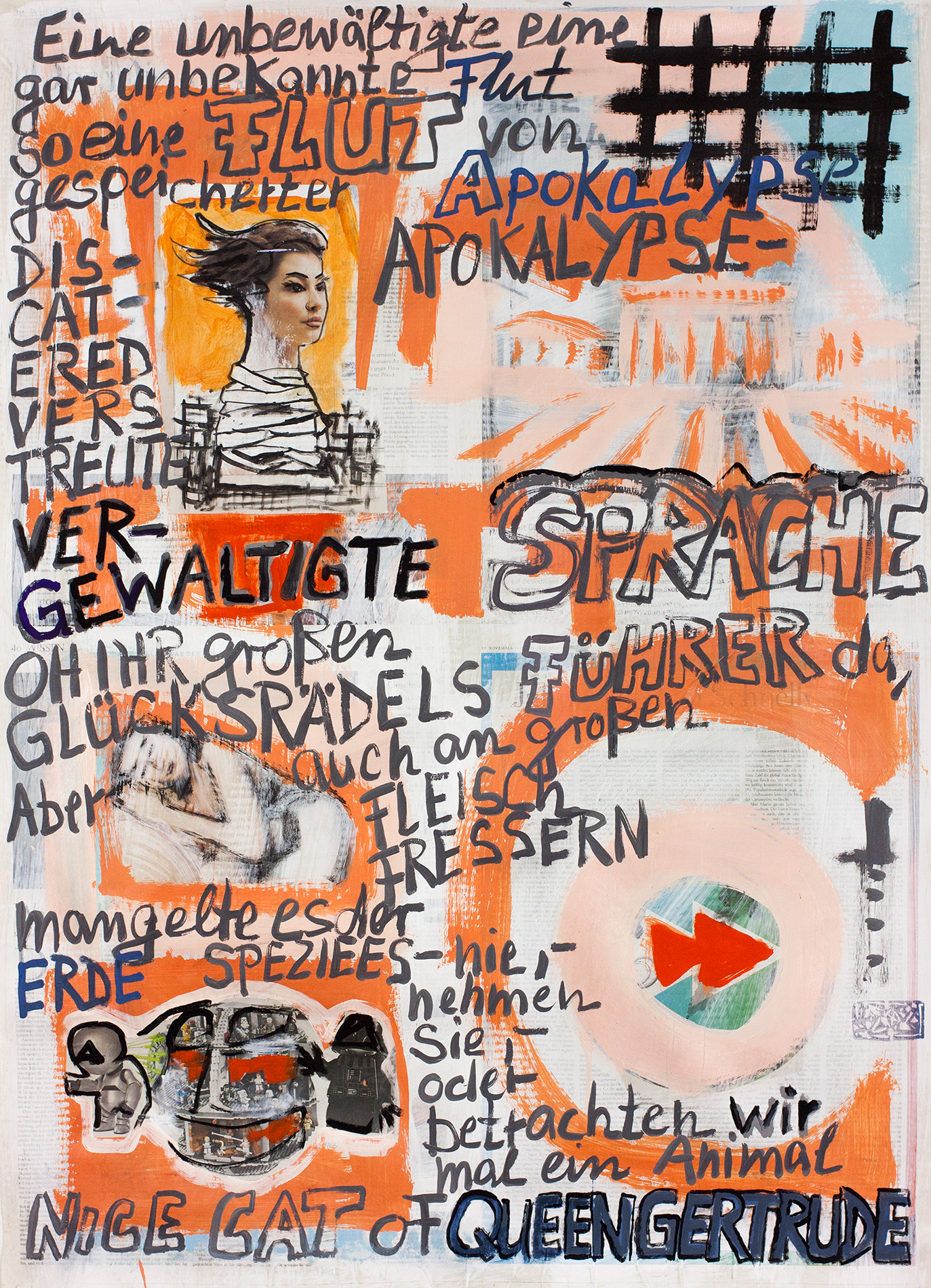 Hamlet Cyborg Infernal Machine painting on newspaper, acrylic, 70 sheets, 2 intro sheets ~112x79cm 2017 60-hamlet-cyborg-infernal-machine Bild 62 von 72