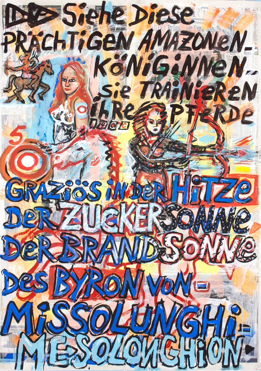 painting on newspaper, acrylic,