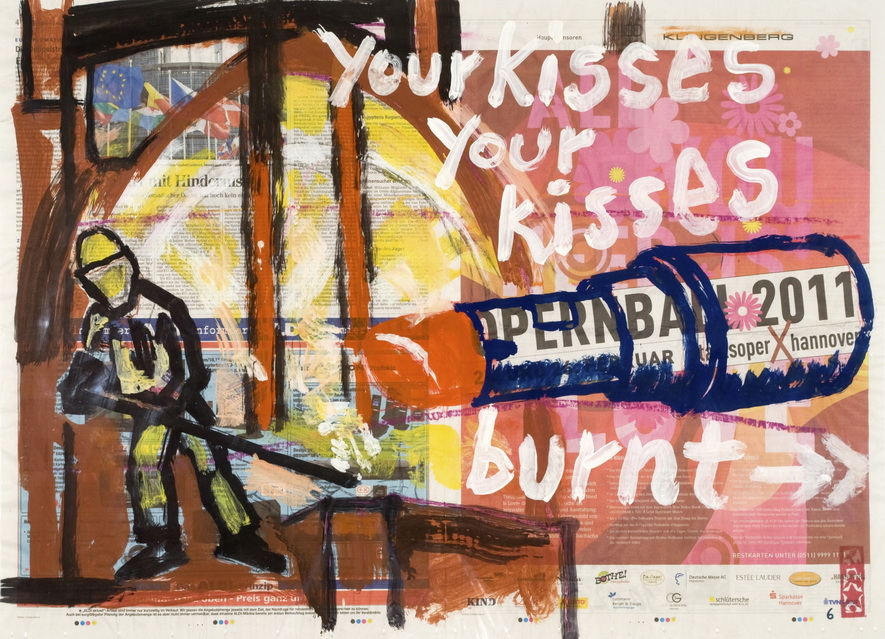 painting on newspaper, acrylic,