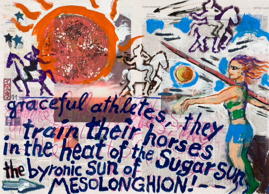 painting on newspaper, acrylic,