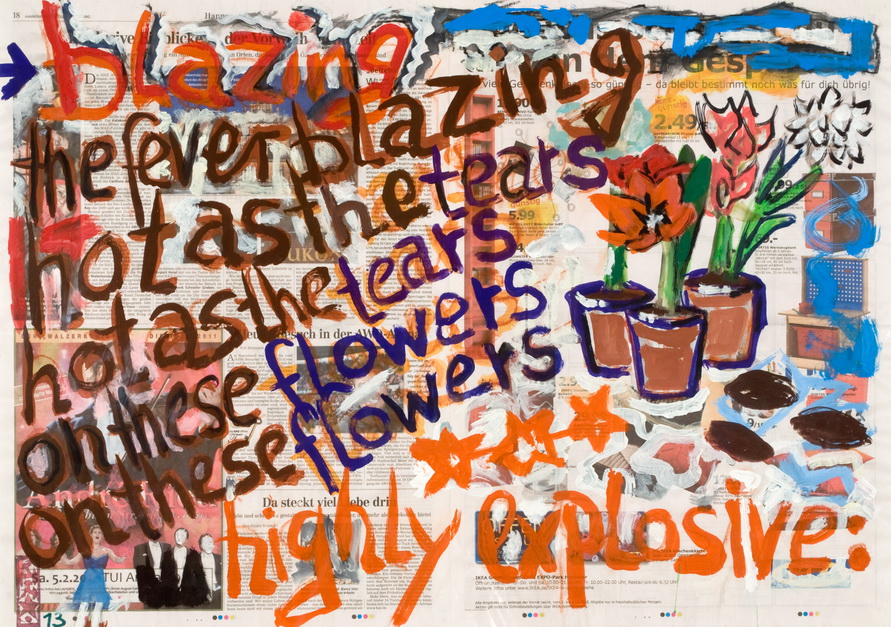 painting on newspaper, acrylic,