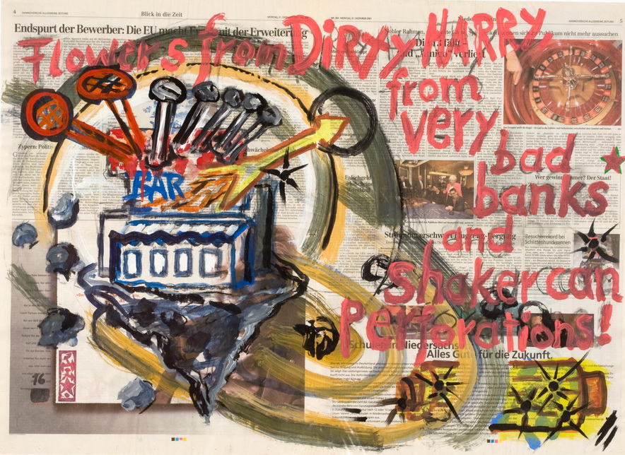 painting on newspaper, acrylic,