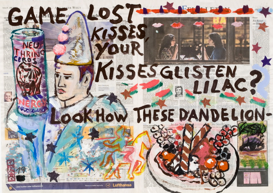 painting on newspaper, acrylic,