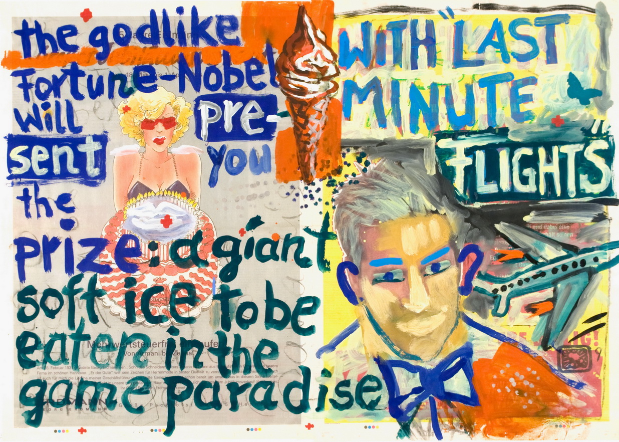 painting on newspaper, acrylic,