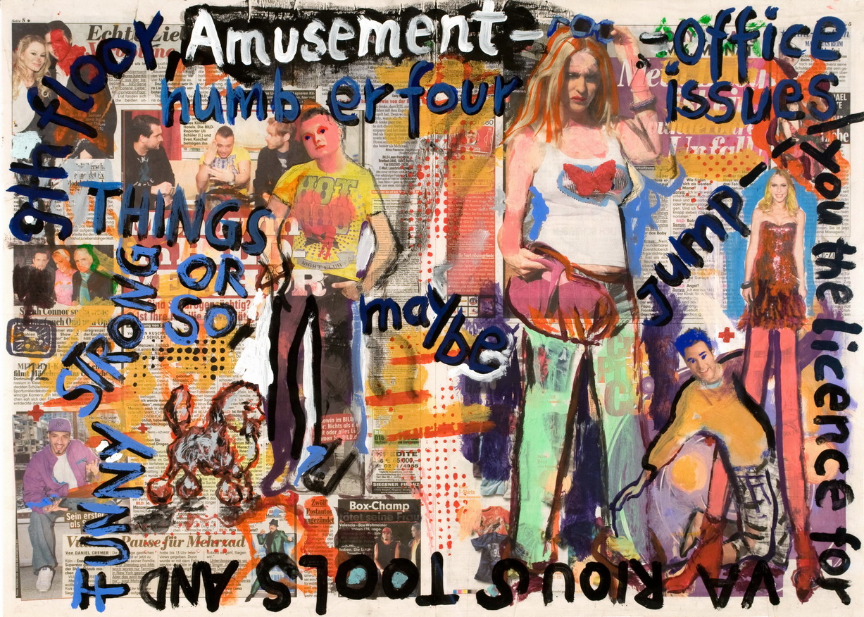painting on newspaper, acrylic,