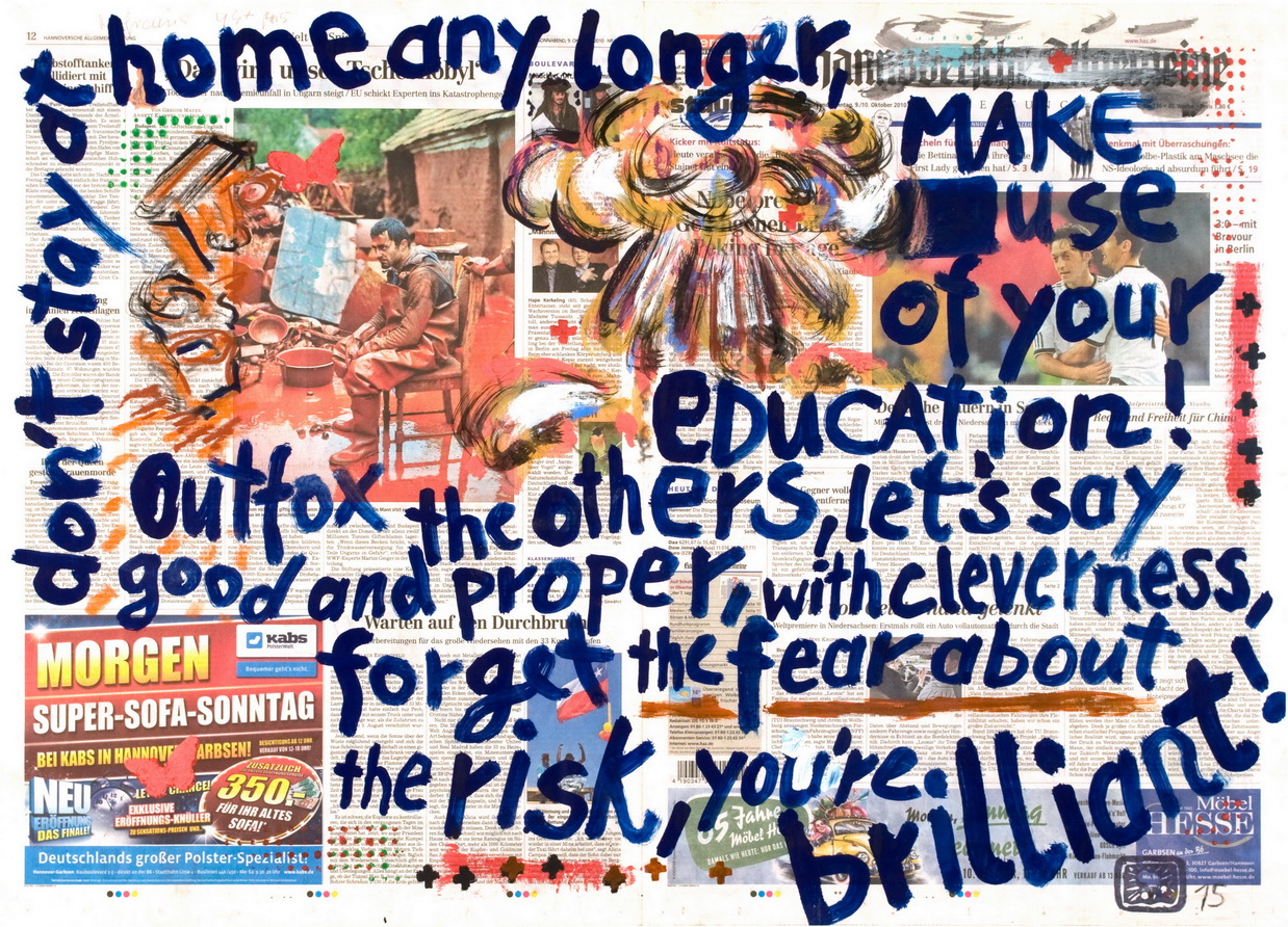 painting on newspaper, acrylic,