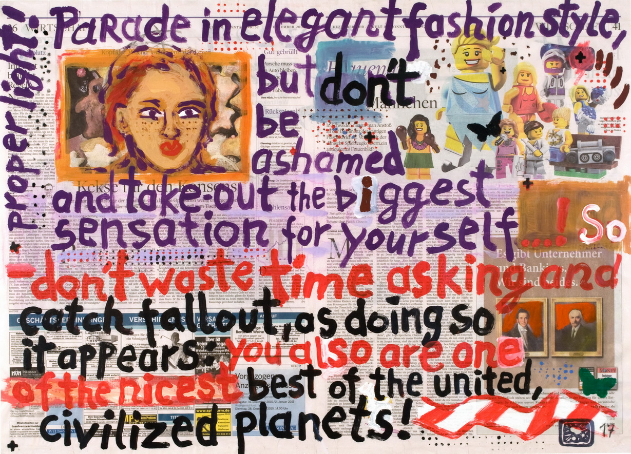 painting on newspaper, acrylic,