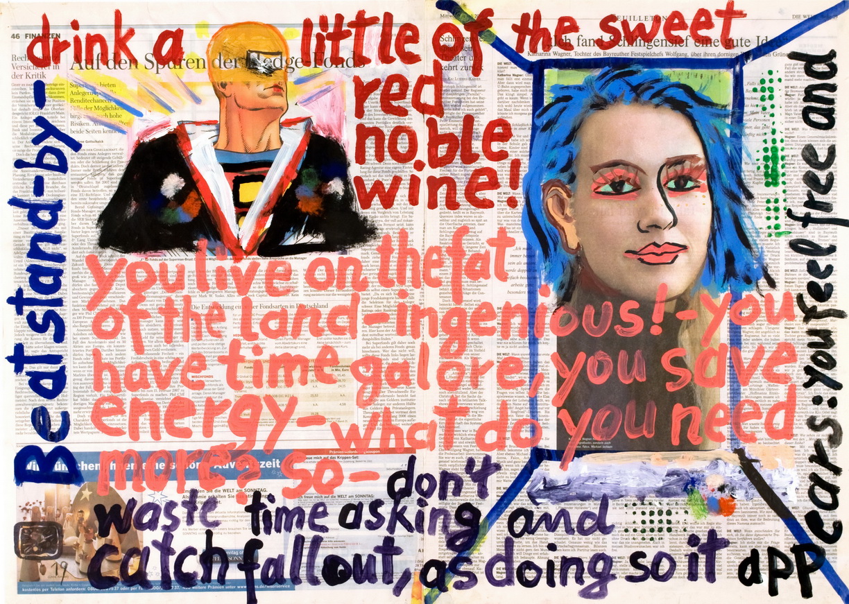 painting on newspaper, acrylic,