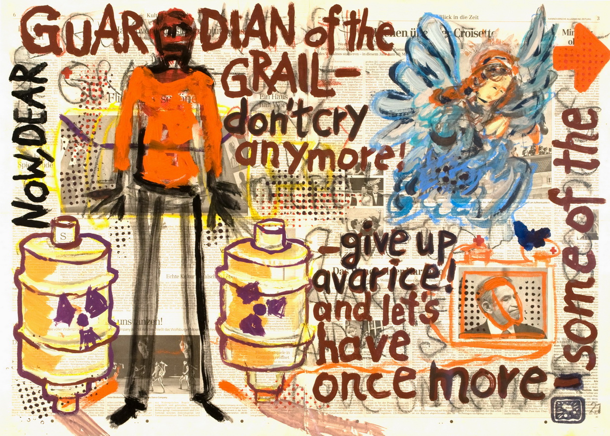 painting on newspaper, acrylic,