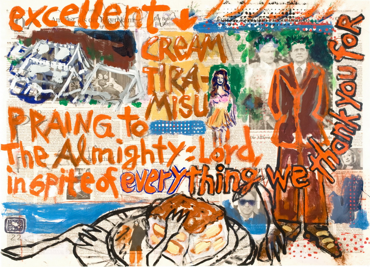 painting on newspaper, acrylic,