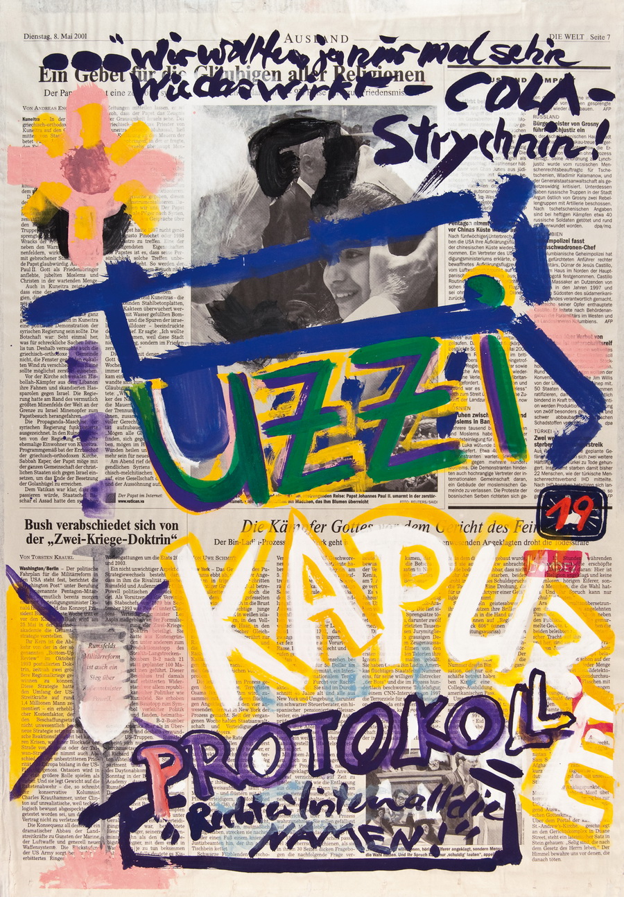 painting on newspaper, acrylic,