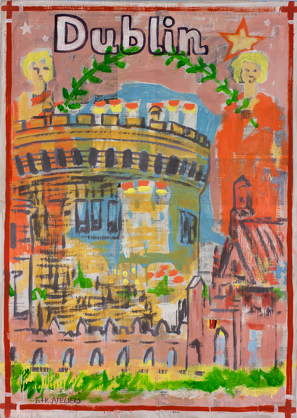 painting on newspaper, acrylic,