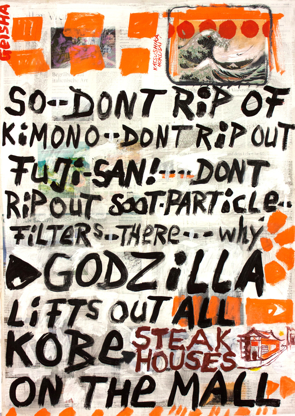 painting on newspaper, acrylic,
