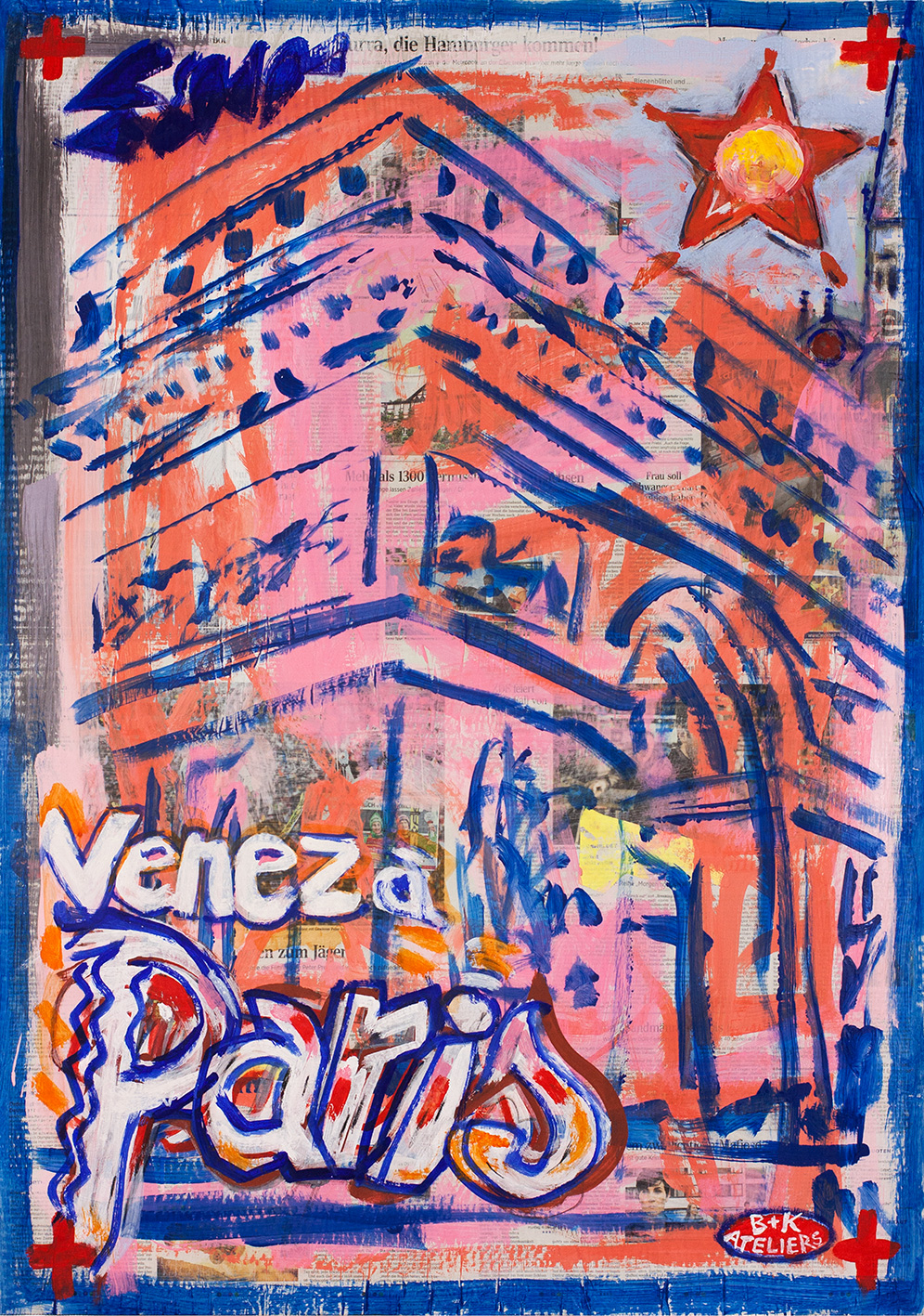 painting on newspaper, acrylic,