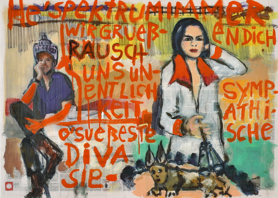 painting on newspaper, acrylic,