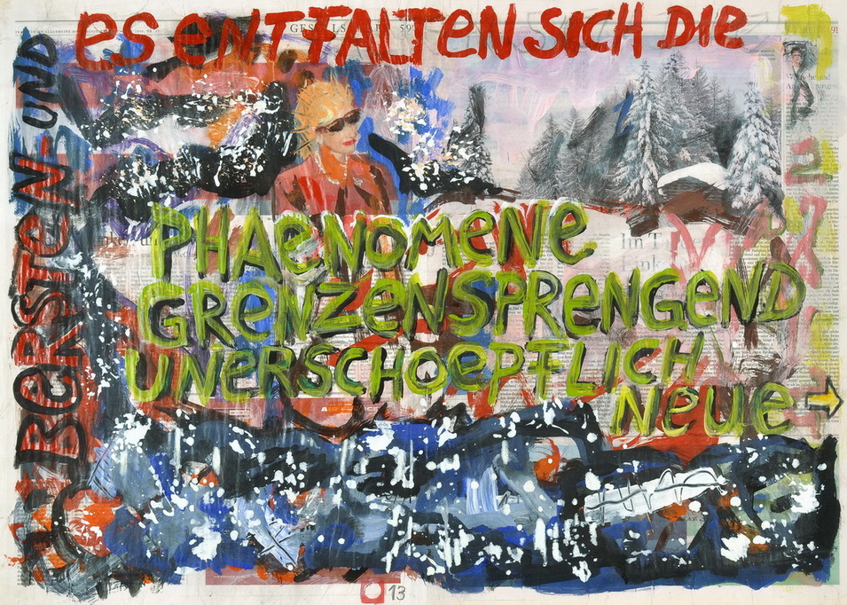 painting on newspaper, acrylic,