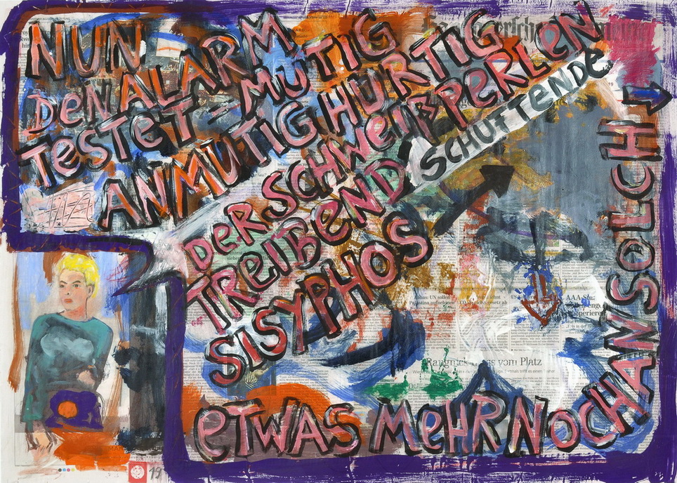 painting on newspaper, acrylic,