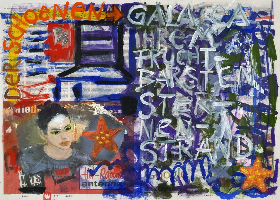 painting on newspaper, acrylic,