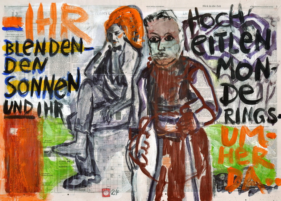 painting on newspaper, acrylic,