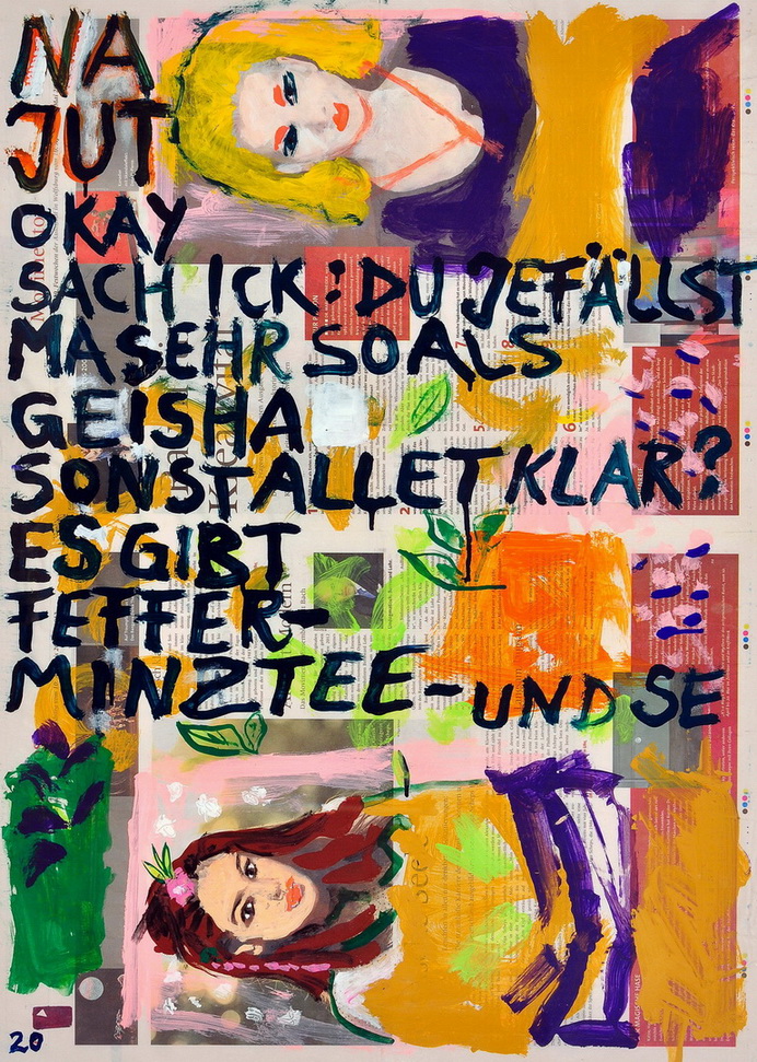 painting on newspaper, acrylic,