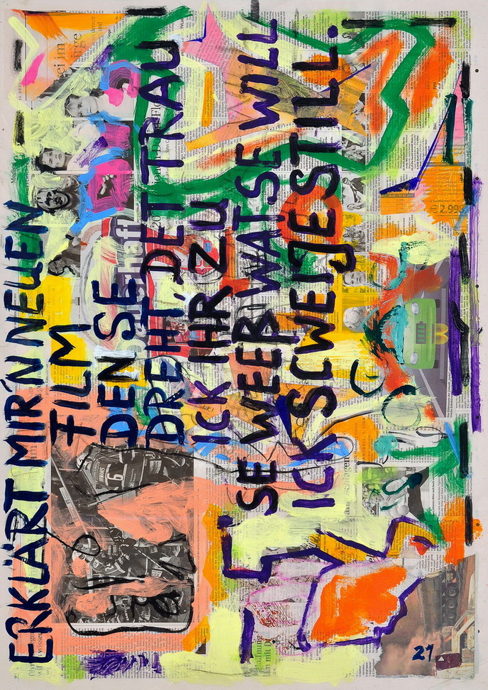 painting on newspaper, acrylic,