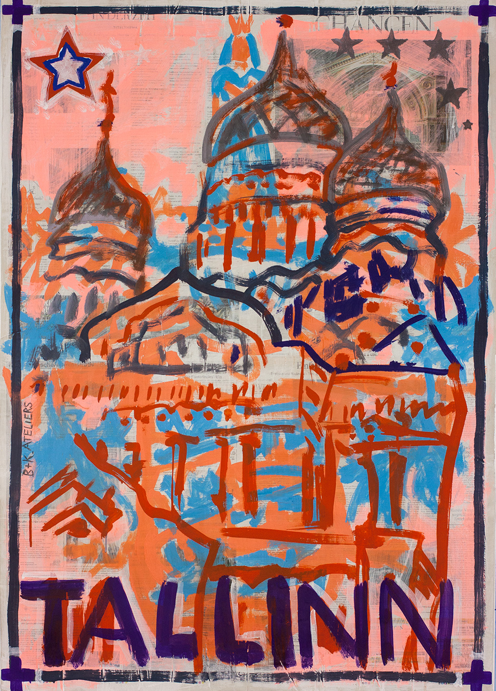 painting on newspaper, acrylic,