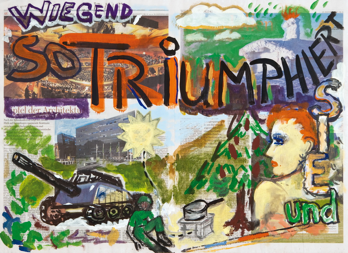 painting on newspaper, acrylic,