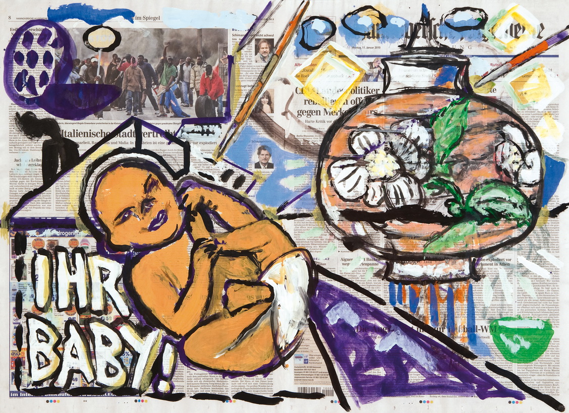 painting on newspaper, acrylic,