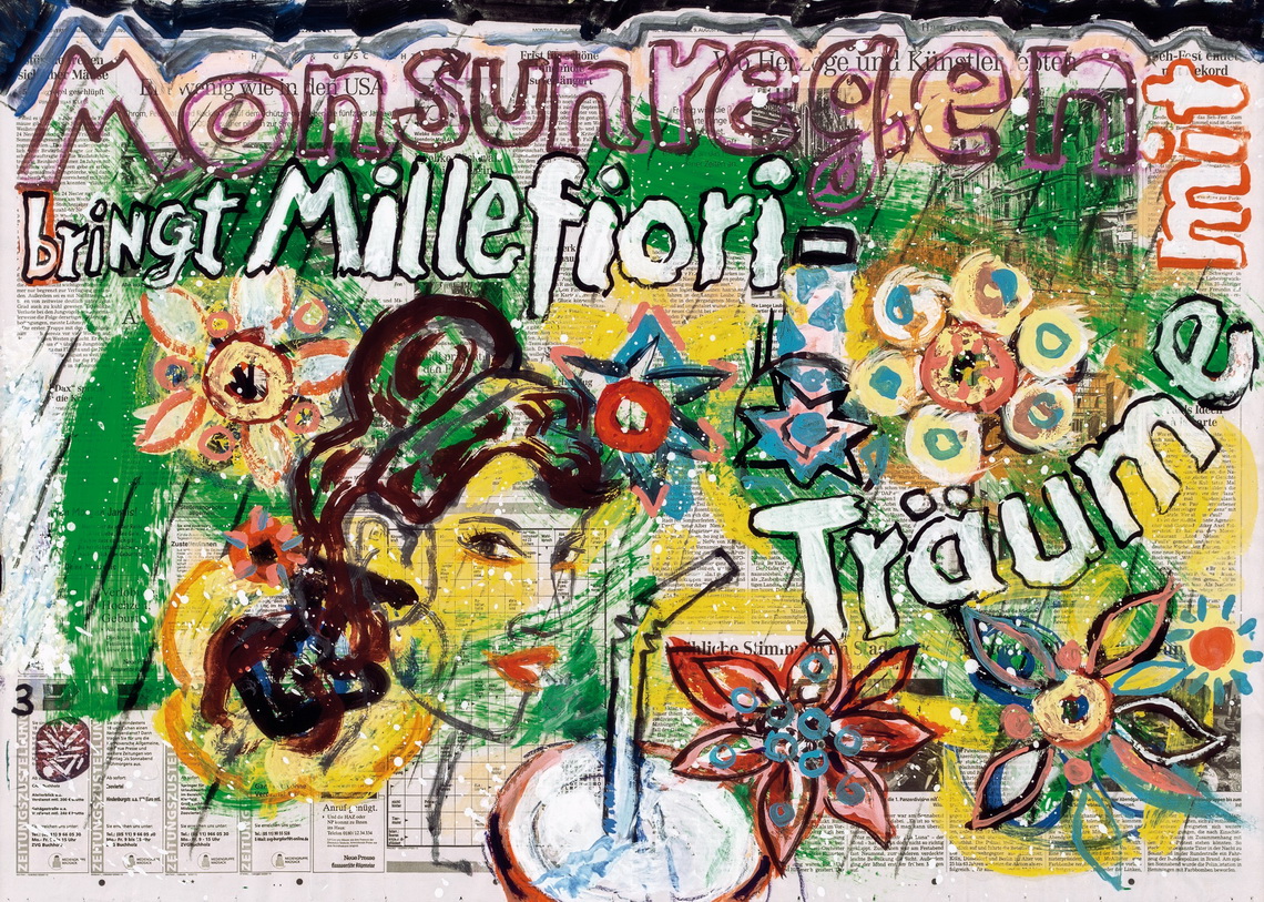 painting on newspaper, acrylic,