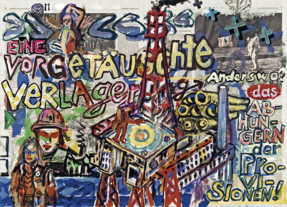 painting on newspaper, acrylic,