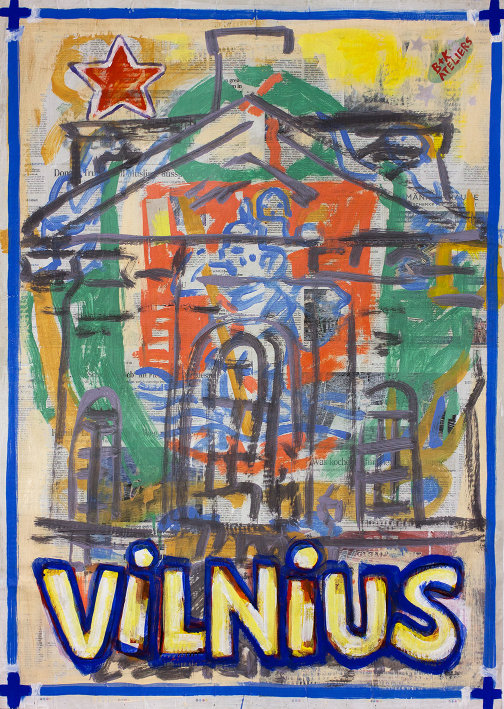 painting on newspaper, acrylic,
