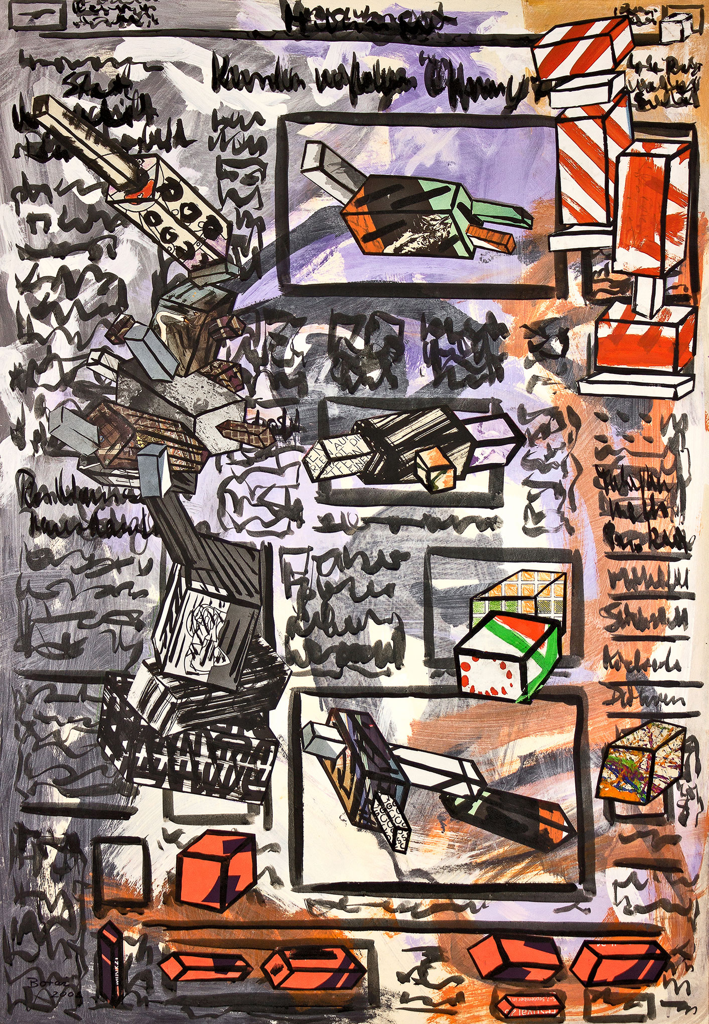 Acryl auf Papier, Artrecycle, Collage, 100 x 70 cm, 2008