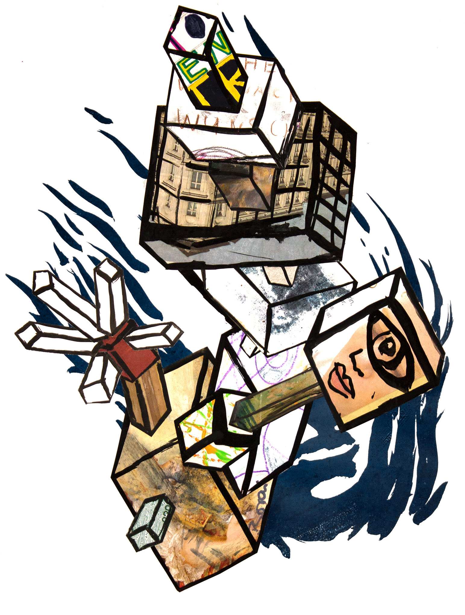 Acryl auf Papier, Artrecycle, Collage, 39.7 x 29.7 cm, 2008
