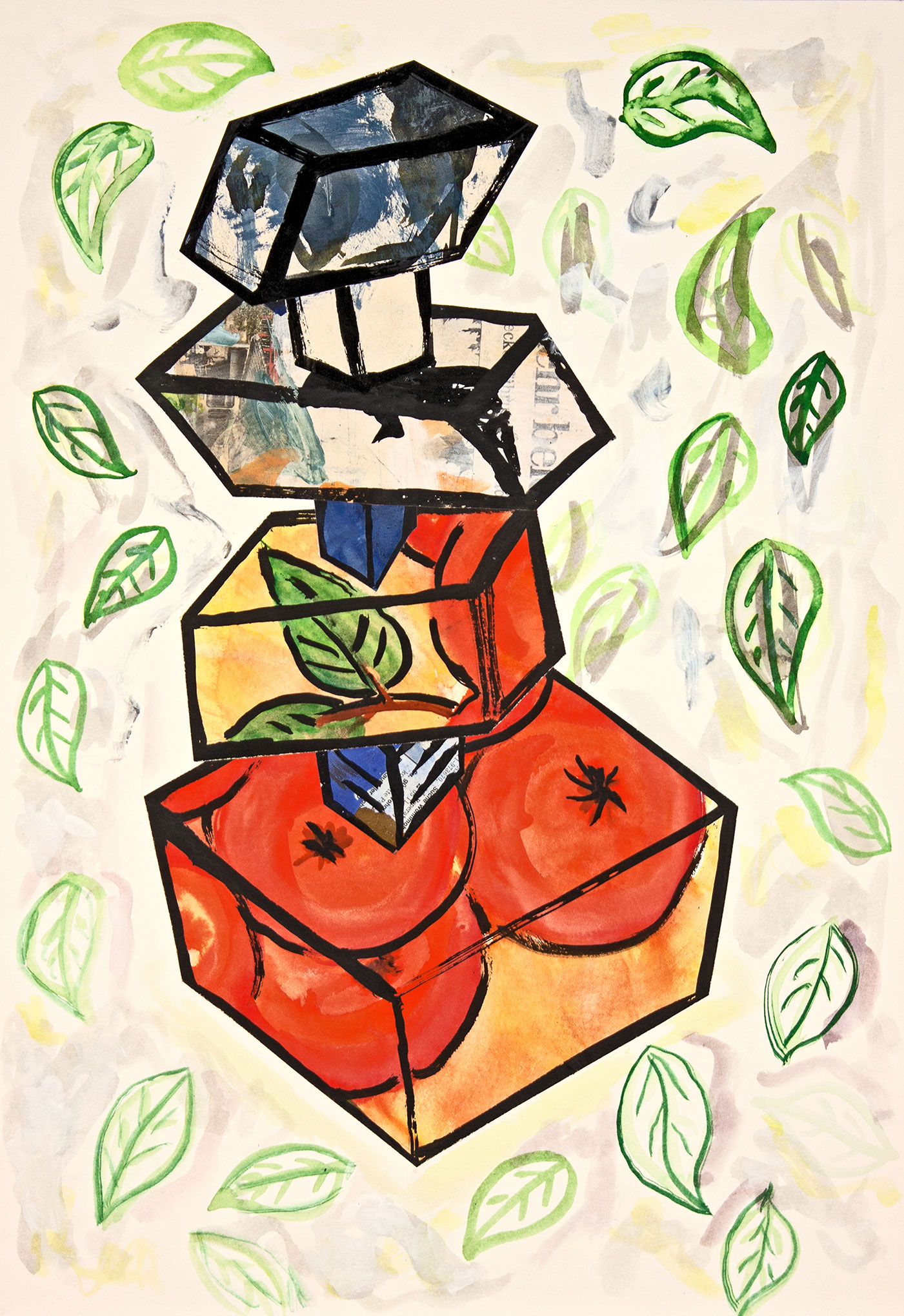 Acryl auf Papier, Artrecycle, Collage, 42 x 29.7 cm, 2008