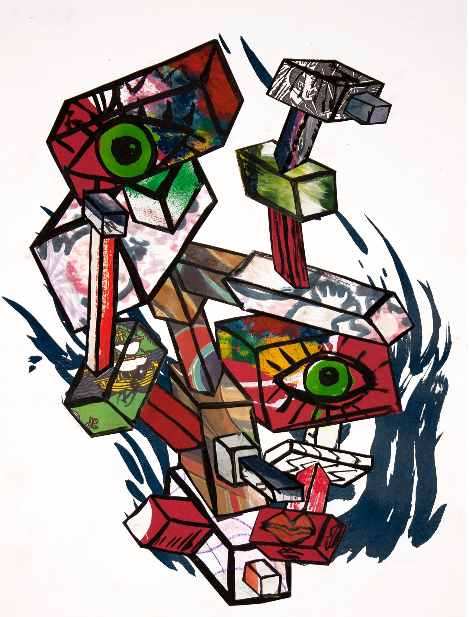 Acryl auf Papier, Artrecycle, Collage, 39.7 x 29.7 cm, 2008